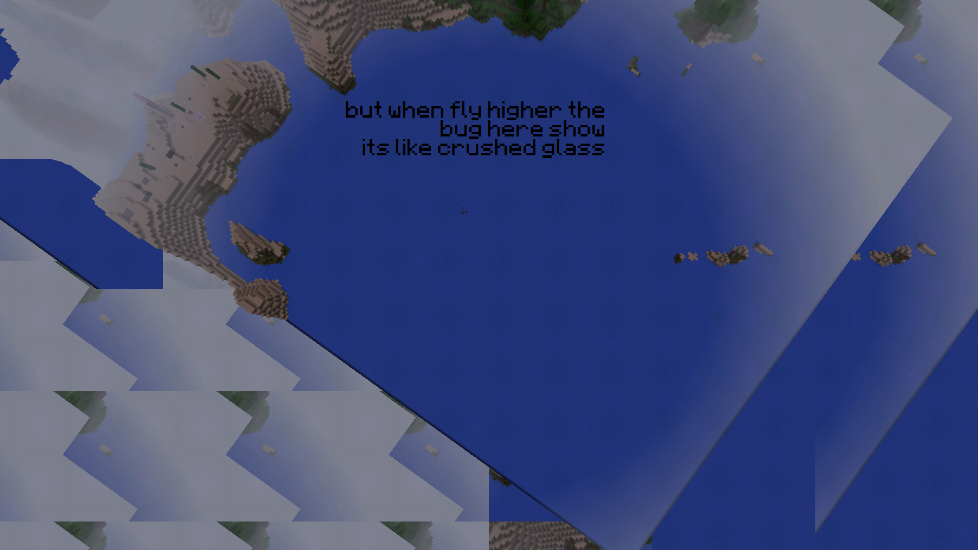 when you fly in a old world to a particular high (exact y:135 or 136) , Next to end of the world (Barriers) , (and you enable hide GUI) the game its like multiple reflection and in several places, such as the eyes of a spider or a glass crushed , but when you go to game menu the reflection disappear...