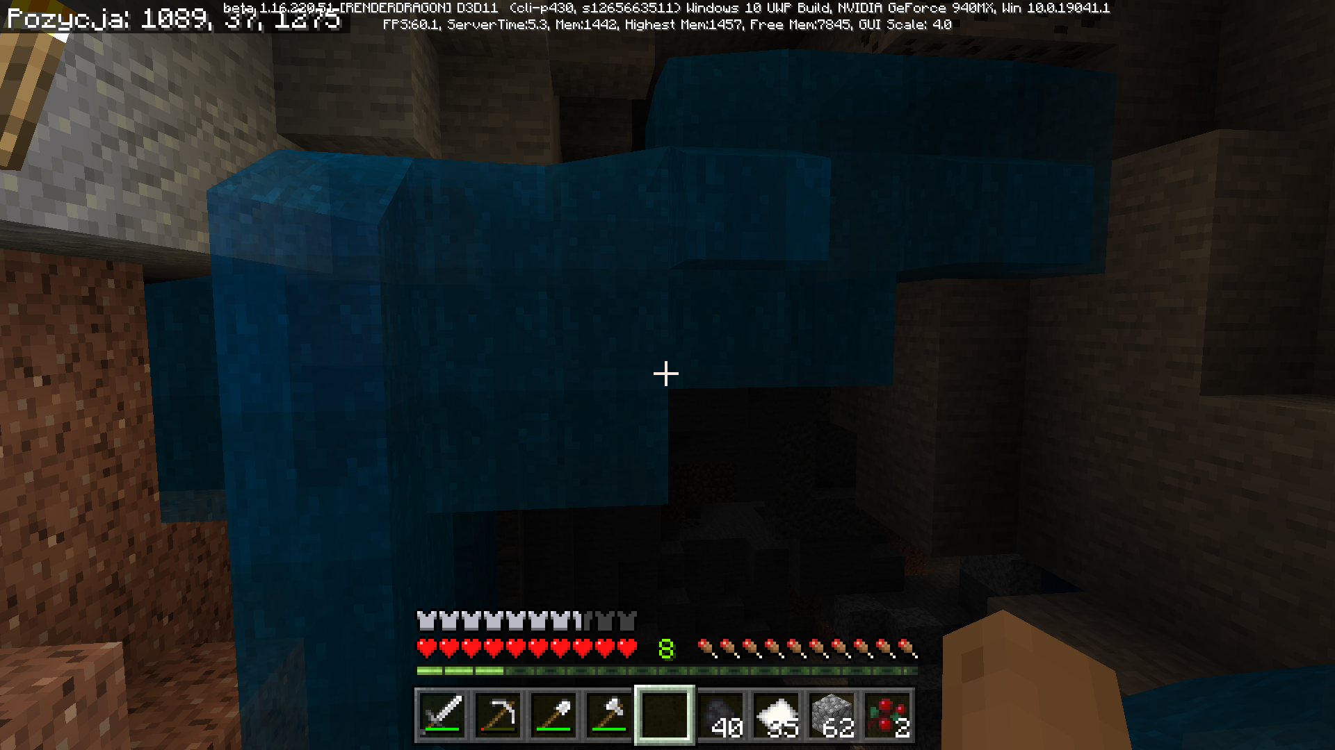 It's clearly visible on the screenshot. Water is levitating. There is no blocks below the water, and water is flying. This bug was generated by game, I found this like that, there are no changes made by myself.