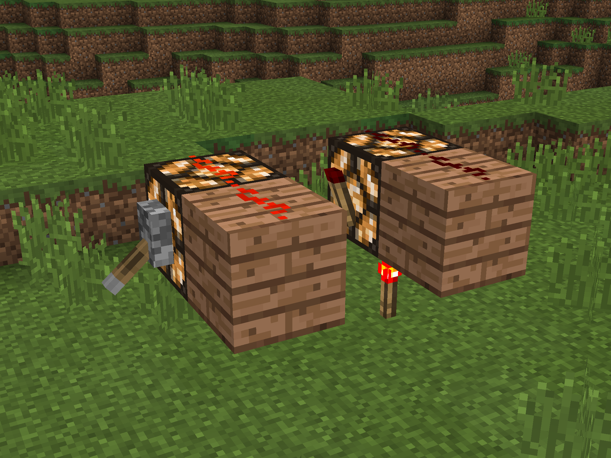 shows an inconsistent opaqueness of redstone lamp. A lamp usually behaves as an opaque block, i.e. it can be strongly-powered just like any other opaque blocks. But when it's powered by a redstone torch below, it gets only weakly-powered.