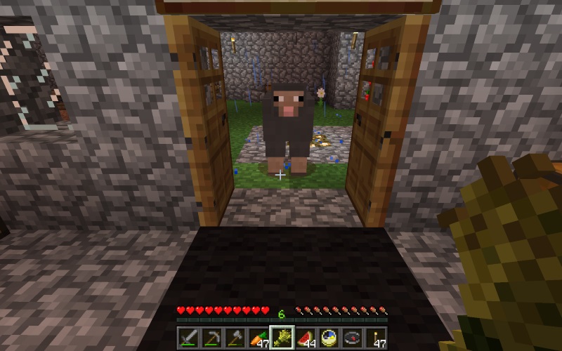 Animals are still unable to walk through doorways. You have to remove doors entirely to get them through. See example screenshot with double doorway and sheep.