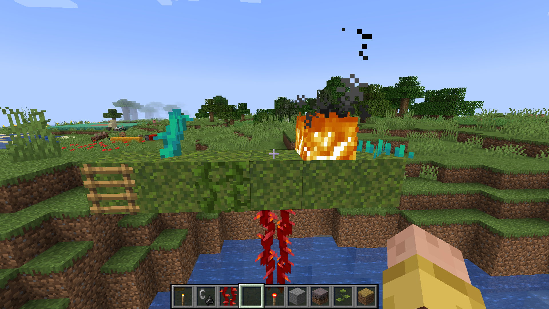 The blocks below cannot be placed on the moss block in bedrock but can be placed on java.