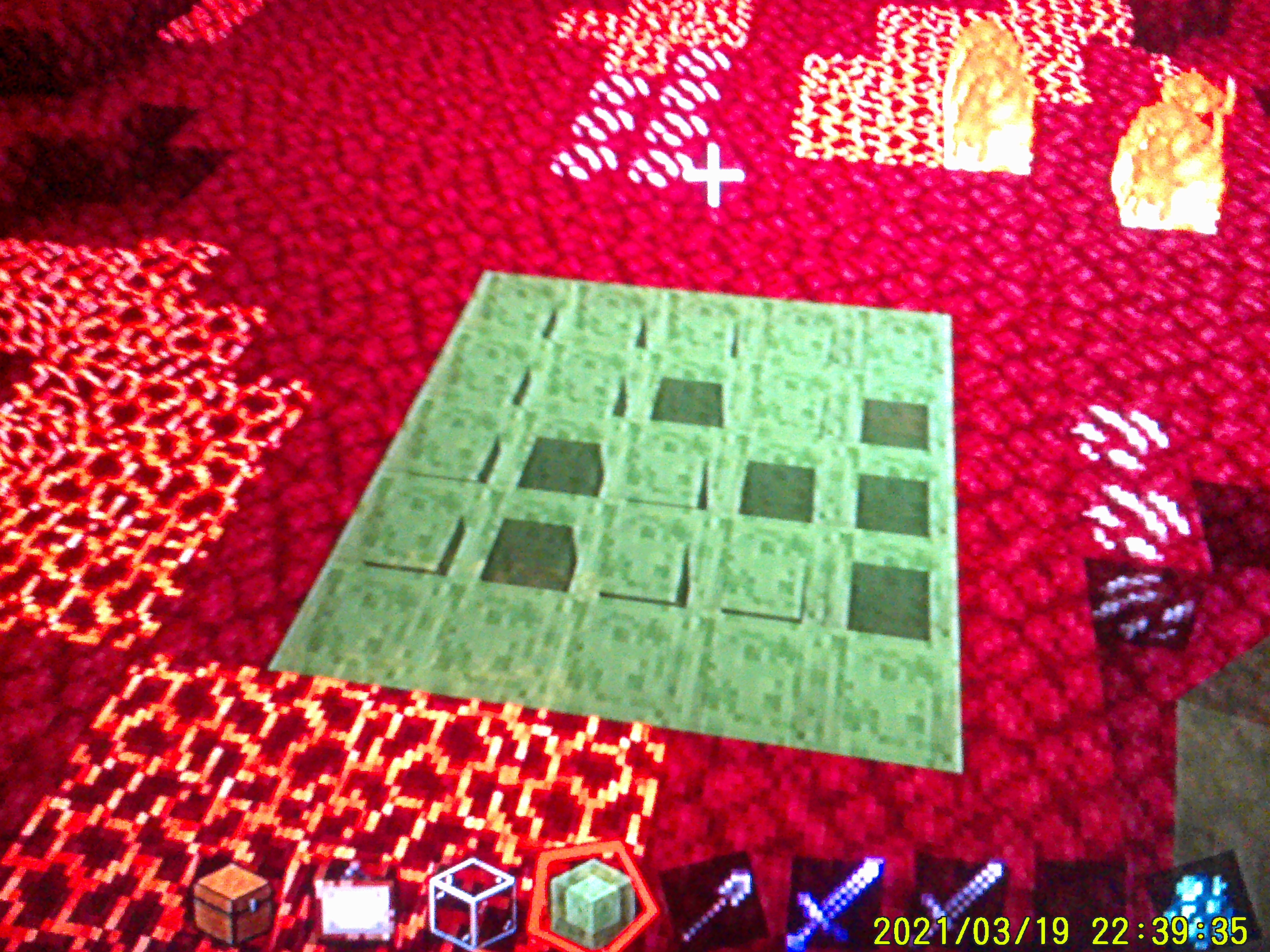 If you are looking at a certain direction, height, and distance from a grid of slime and honey blocks, the texture of certain blocks within the grid looks strange.