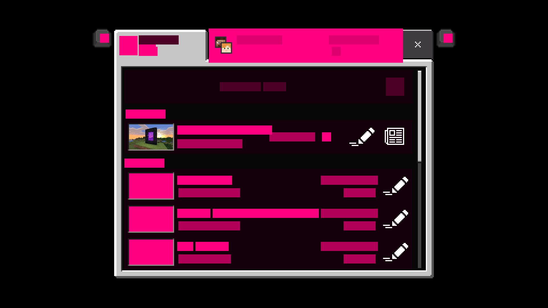 I have noticed the longer I play mc the more this Hot Pink error spreads. It effect everything in my game. title screen, blocks, custom skins, just everything. I have to reset my game completely to make it stop and it gets worse the longer you play. When I'm in a server everything just turns pink. In the picture below it wasn't too bad but normally everything would just be pink. Two of the pictures below are soused to be the market place and my settings. I have no idea what other versions this affects except 1.16.210