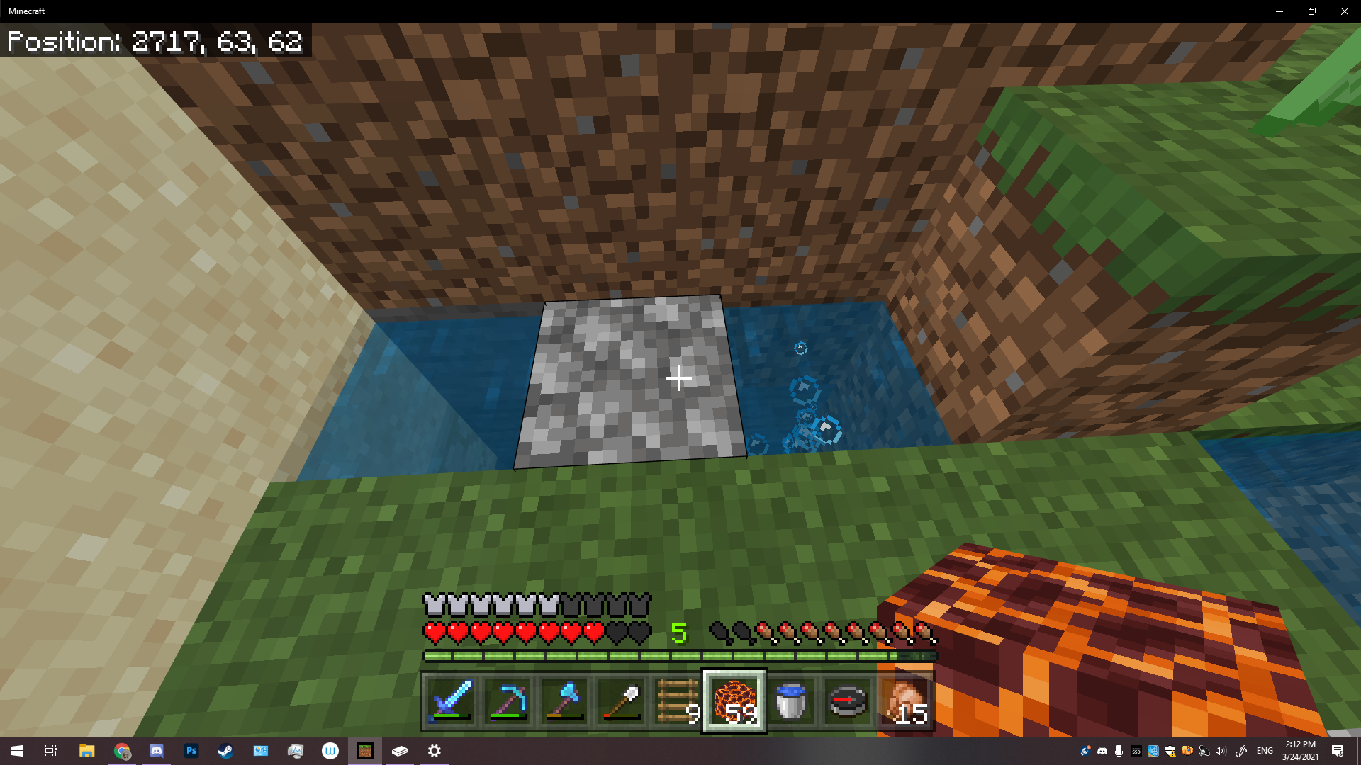 When trying to make a whirlpool-based elevator the magma block just refuses to make bubbles. i've been trying to make it work for a while now, but to no avail. The soul sand works fine next to it, and if i place the same magma block elsewhere in the ocean it also works perfectly, but not on the spot here i want it.