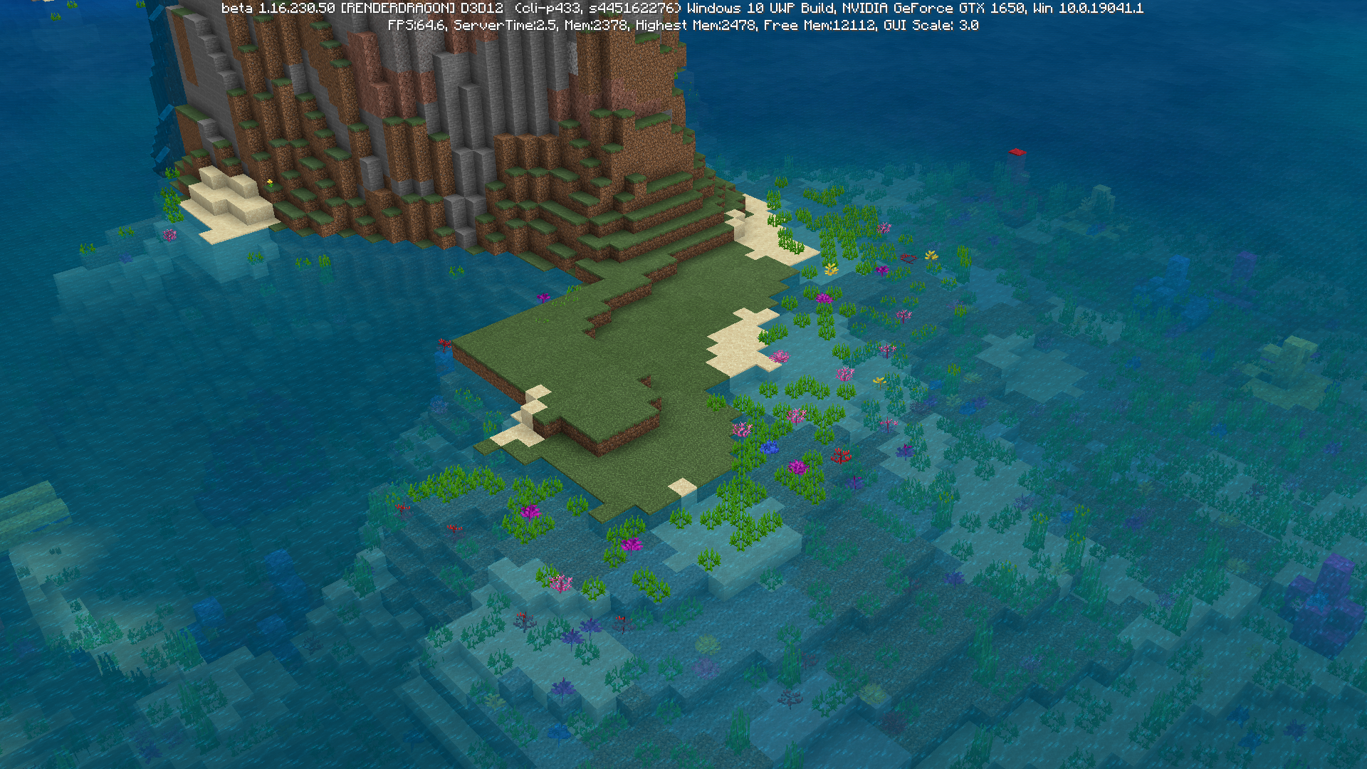 Seagrass, kelp, and corals appears to be rendering in front or outside water
