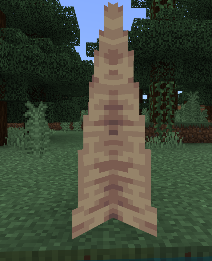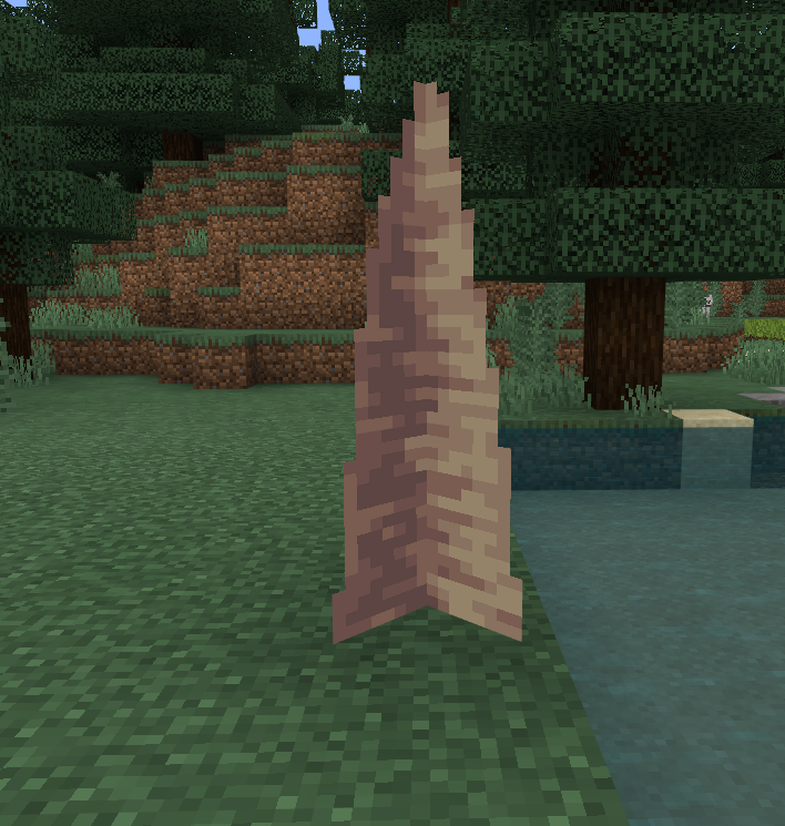 I've noticed this for a long time, but never reported it because it has no impact on gameplay. The only reason I report it now is because it's an actual problem on one new block in the Caves and Cliffs update, the pointed dripstone. Pointed dripstone is interesting to me because while it does use the cross model, the block is indented to appear rounded, like a cylinder. It relies solely on it's texture to convey that round shape. This is where the problem comes in. From two sides of the block, it looks like this.