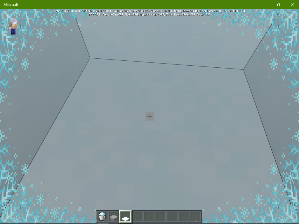 On the bedrock beta of 1.17 (1.16.230.52), a semi-transparent box appears over your crosshair when your view is in powdered snow.