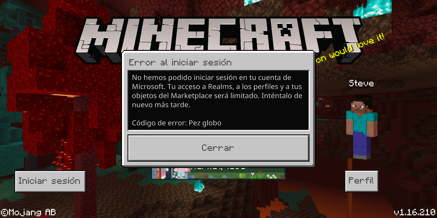 Hello, very good afternoon or evening, I hope you can help me and well, what I've been coming to lately I have had a problem to start session in Minecraft, which the first and most important is the code of Puffer Fish error. He lets me know and explain that I will not be able to do anything and that he will limit my purchases and start the session that I try later, I really do not know what to do unfortunately is something "Desperate to see that you can't do anything" So I'd like to see if you can help me. I already tried everything from uninstalling the app and installing it one more time and well it has not worked another one appears Error code, which is (Error code: Creeper) and well I already closed and I opened a Microsoft account but nothing, I hope you can support me πΒ