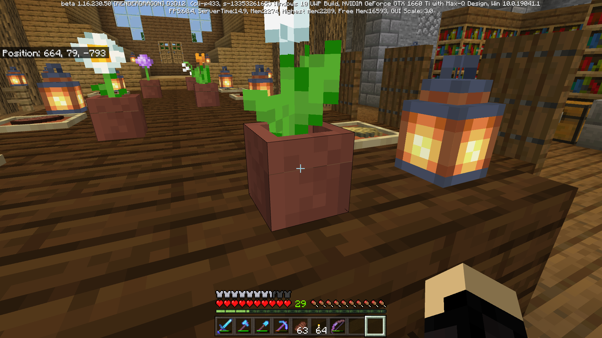 Stand one block lower than the flower pot