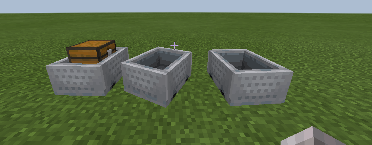 Left is minecart with chest, middle is minecart with hopper, right is regular minecart.