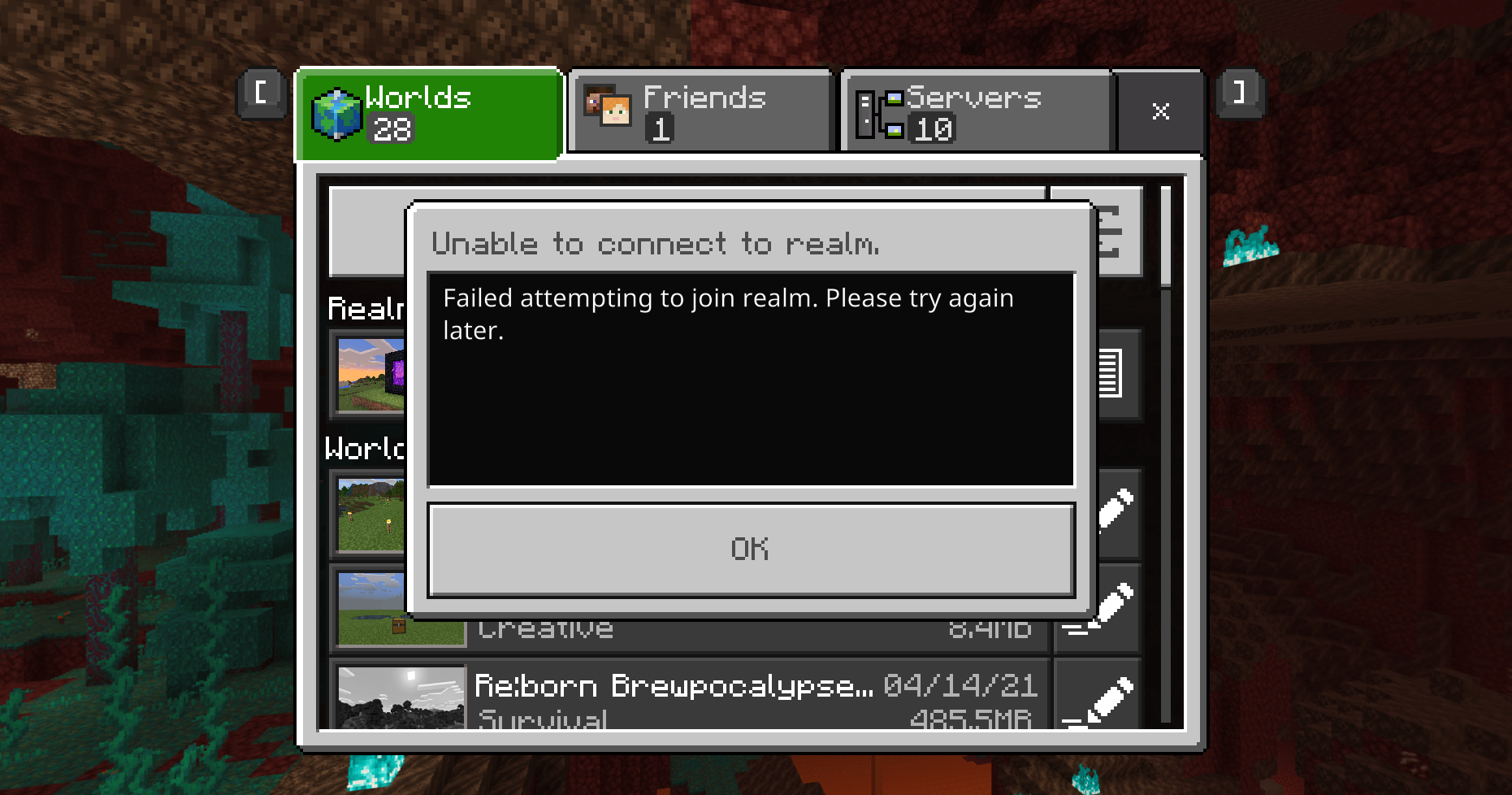 When I try loading up my realm it says, "unable to connect to world" it worked 2 hours ago, why won't it work now? I've only had it for 6 days. Are the servers down?