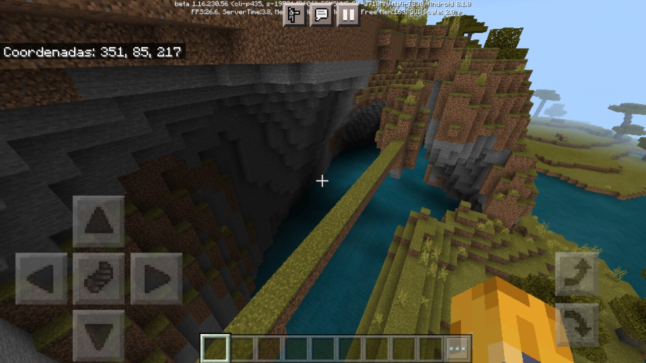 Cave generation (noise caves or flooded caves) goes through mountains and hills (Savanna Plateau in this case), creating a gap.