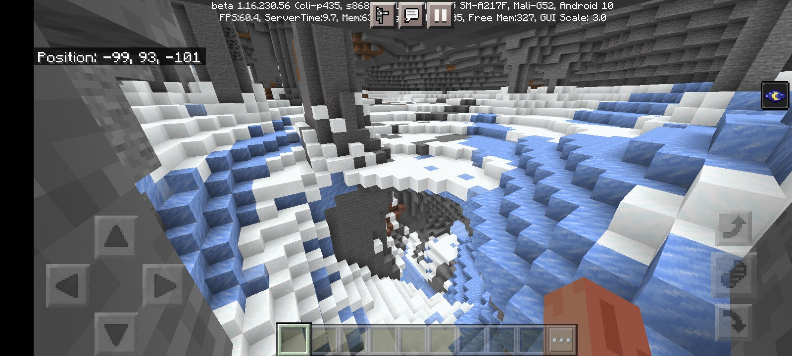 In the most recent version, I found something that I'll be assuming is a bug (but it does look really nice as a cave biome) where a new cave generating into a new mountain will contain snow, powdered snow, ice and frozen lakes. This can be found specifically on seed 868550010 and is a feast for the eyes. To replicate, literally just find any new mountain with a new cave carving into the side of it and you will be able to access this. Screenshots below picture this wonderful bug which has graced the new mountains with it's presence.