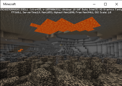 I flew down a cave and found exposed bedrock and floating lava.