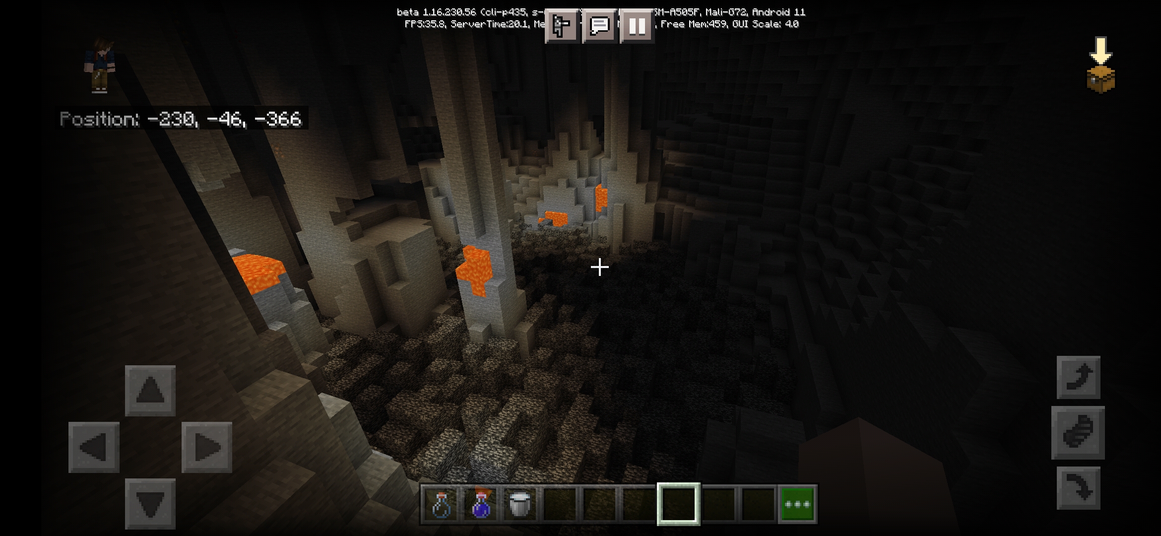 Here I found a bug. In this bug a large amount of bedrock is exposed to air (which shouldn't happen according to java snapshots) and also glitches lava which will stay stable and dosen't flow.