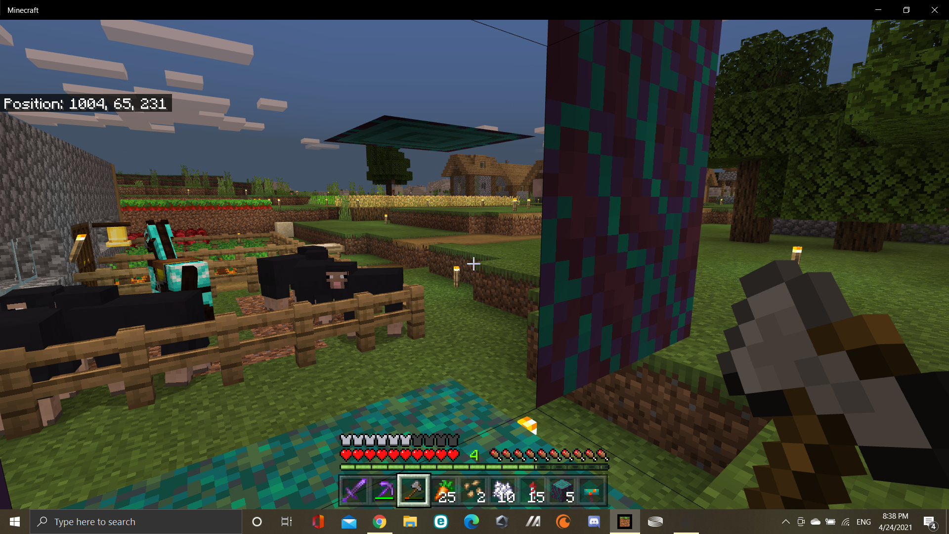 If you've been wearing a netherite helmet for a while you can phase through blocks if there isn't a block under them.