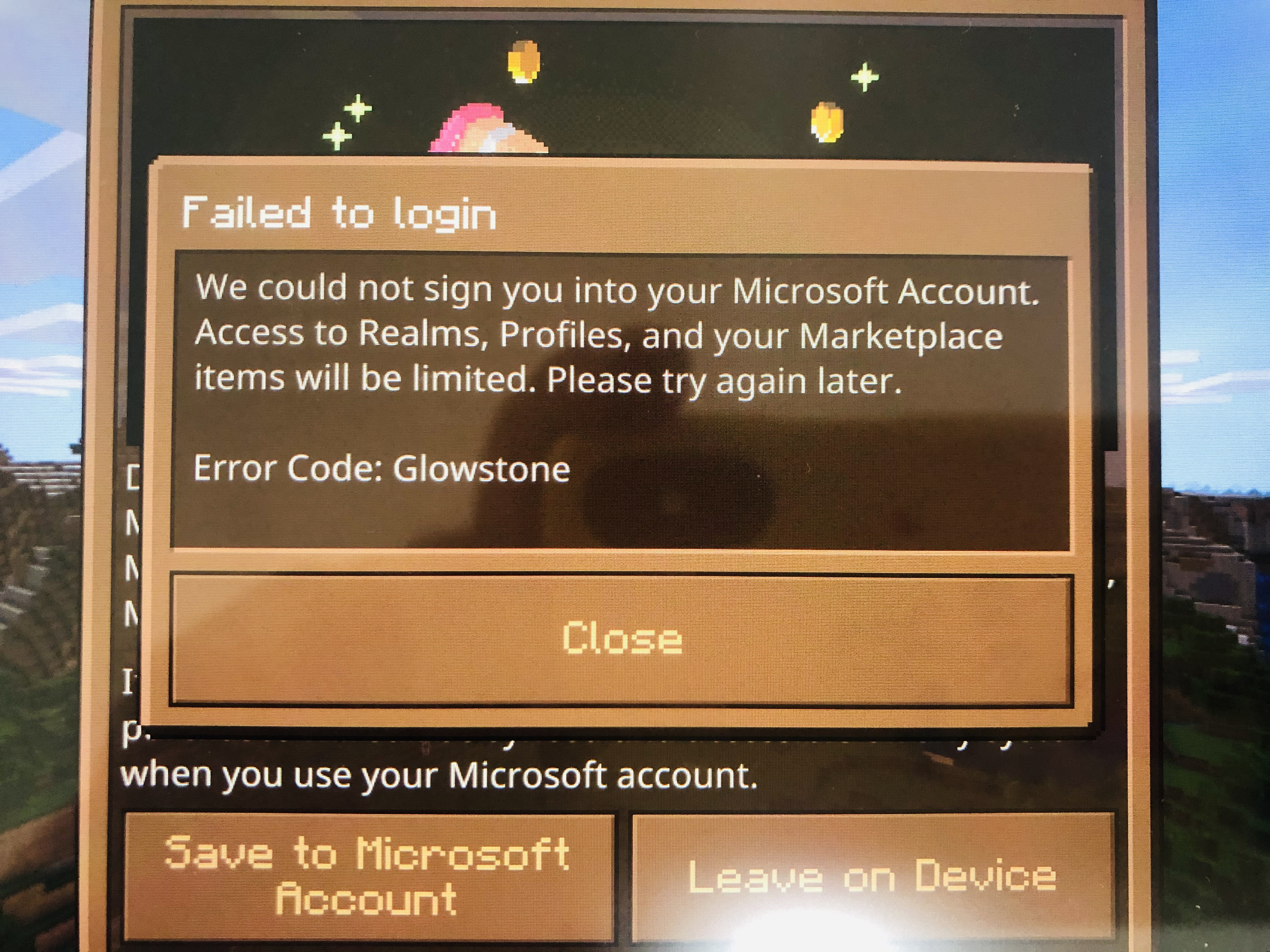 We could not sign you into your Microsoft Account. Access to Realms, Profiles, and your Marketplace items will be limited. Please try again later.