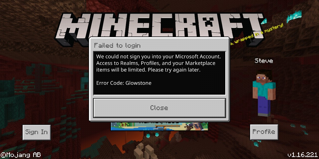 "We could not sign you in to your microsoft account. Access to Realms, Profiles and your Marketplace Items will be limited. Please try again later.
