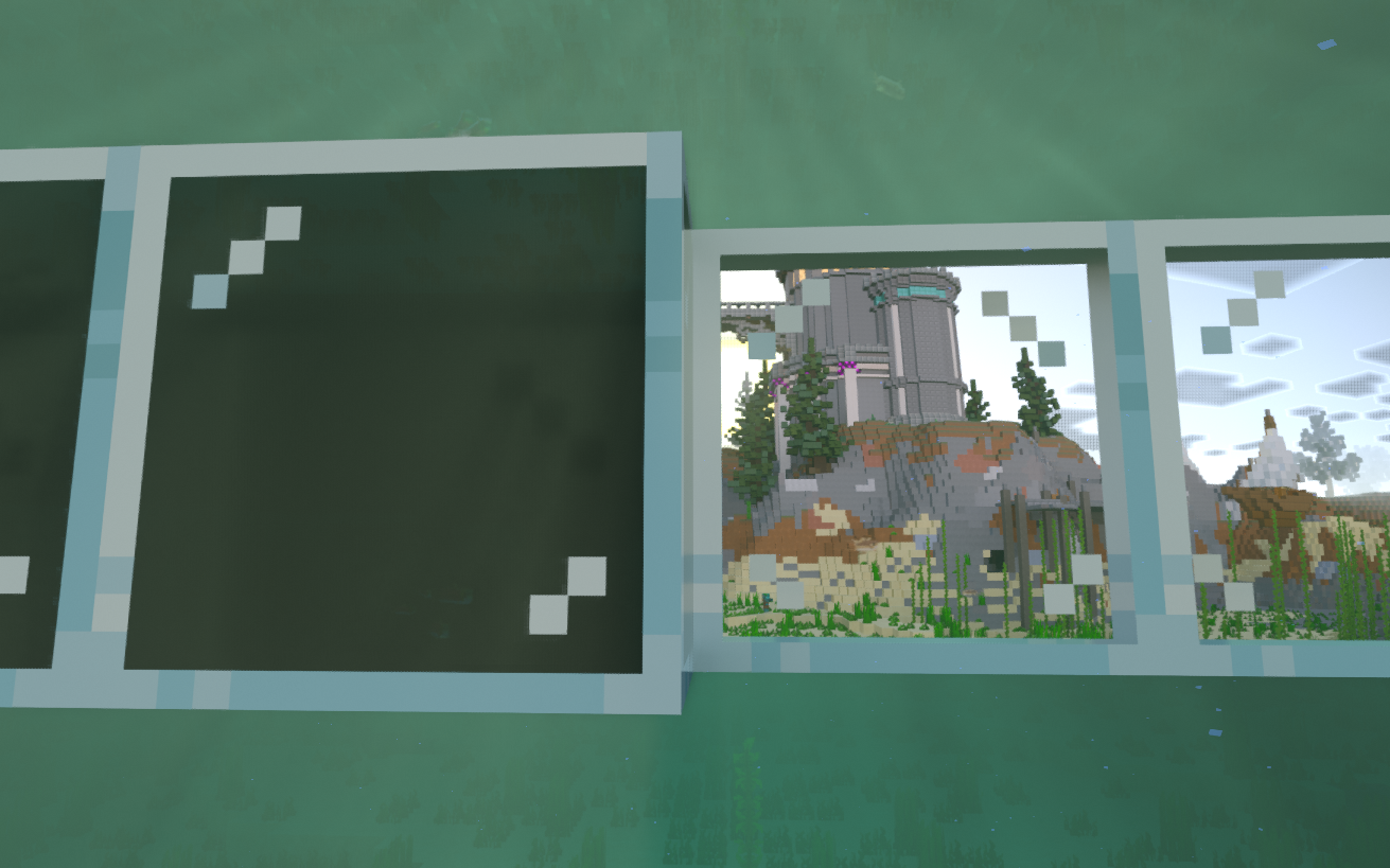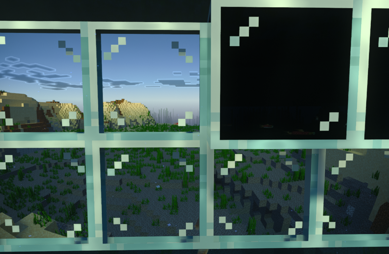 Normal glass & Normal glass pane, as you can see in the screenshot, everything is Black through Glass block underwater, while glass pane makes water Invisible.
