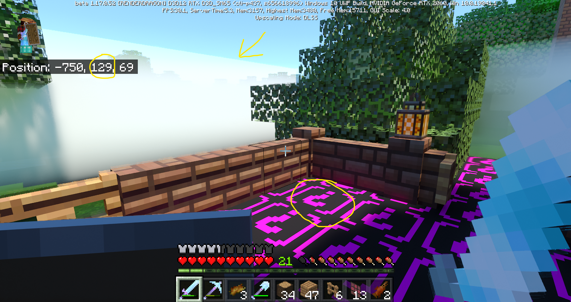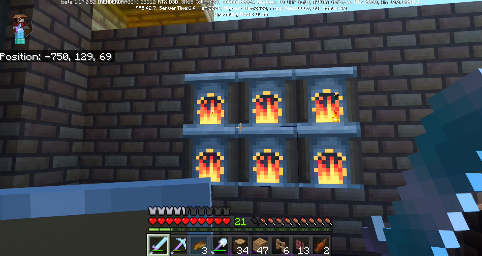 While on the ground level, the altitude now reads 128, 129. Items that were in the furnace when I last played are no longer there, but when looking at the furnace it appears that something cooking.