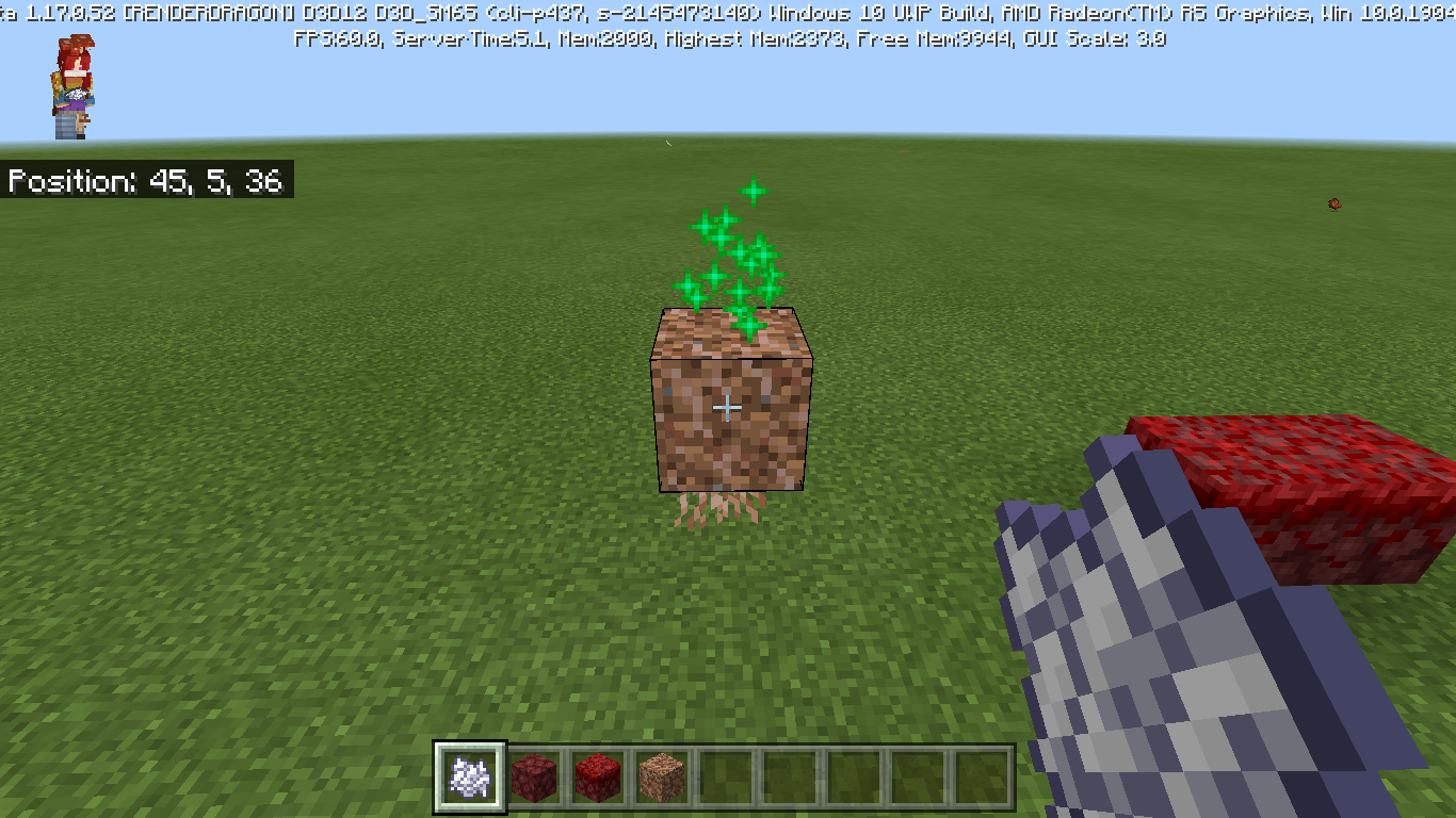 Bone meal used on rooted dirt causes the particles to appear above it, despite the growth being below it.