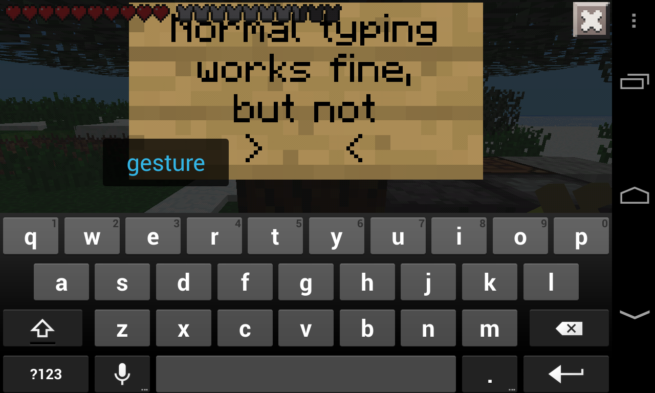 Android 4.2 users are unable to use gesture typing on signs. Normal typing works fine.