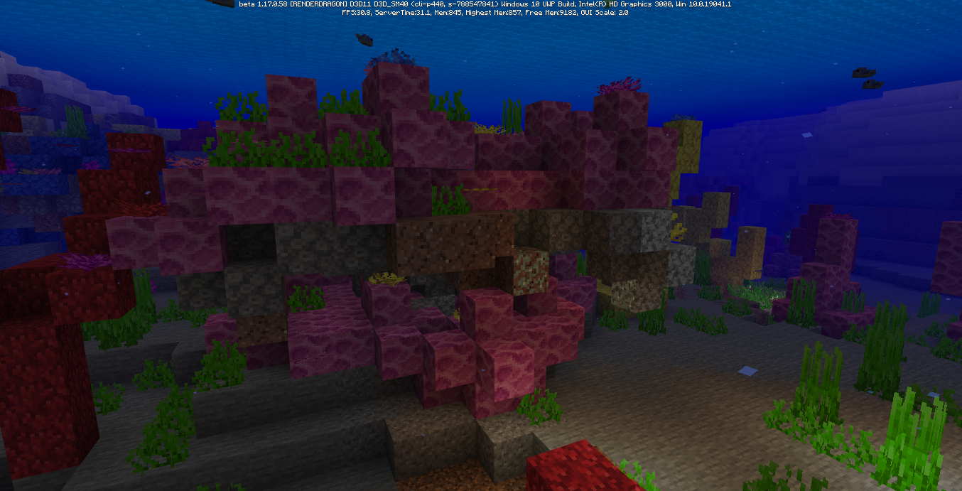 Se genera andesita o granito junto al coral haciendo que los corales parezcan muertos.
