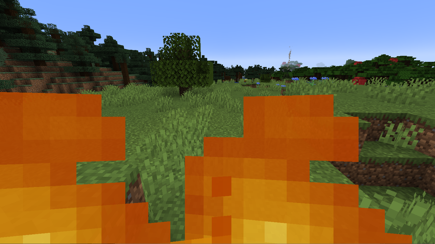 Currently in bedrock, the first-person fire overlay animation takes up literally more than three-quarters of the screen.