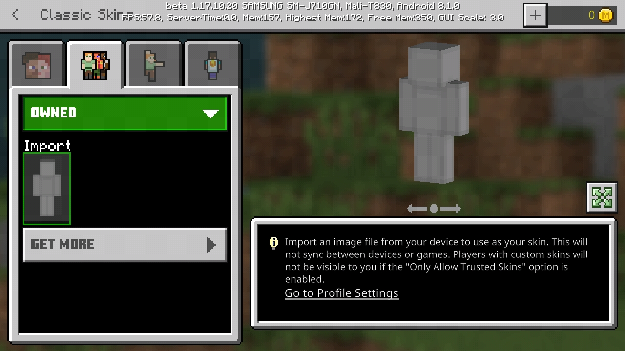 I was trying to change my skin, but there was no import skin button. What am I doing wrong?