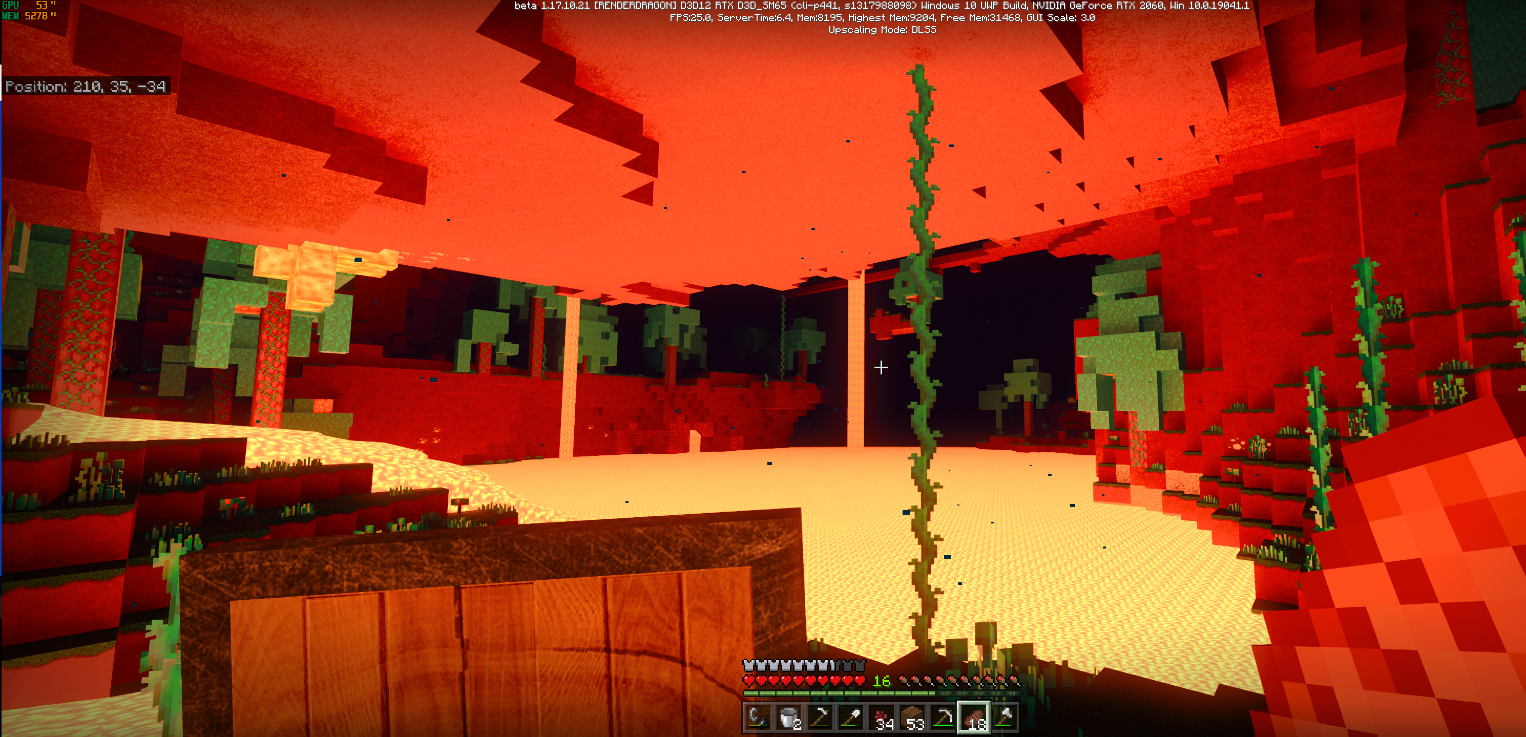 The first screenshot has plant blocks displaying 16 bit textures but the render distance is only 8 chunks