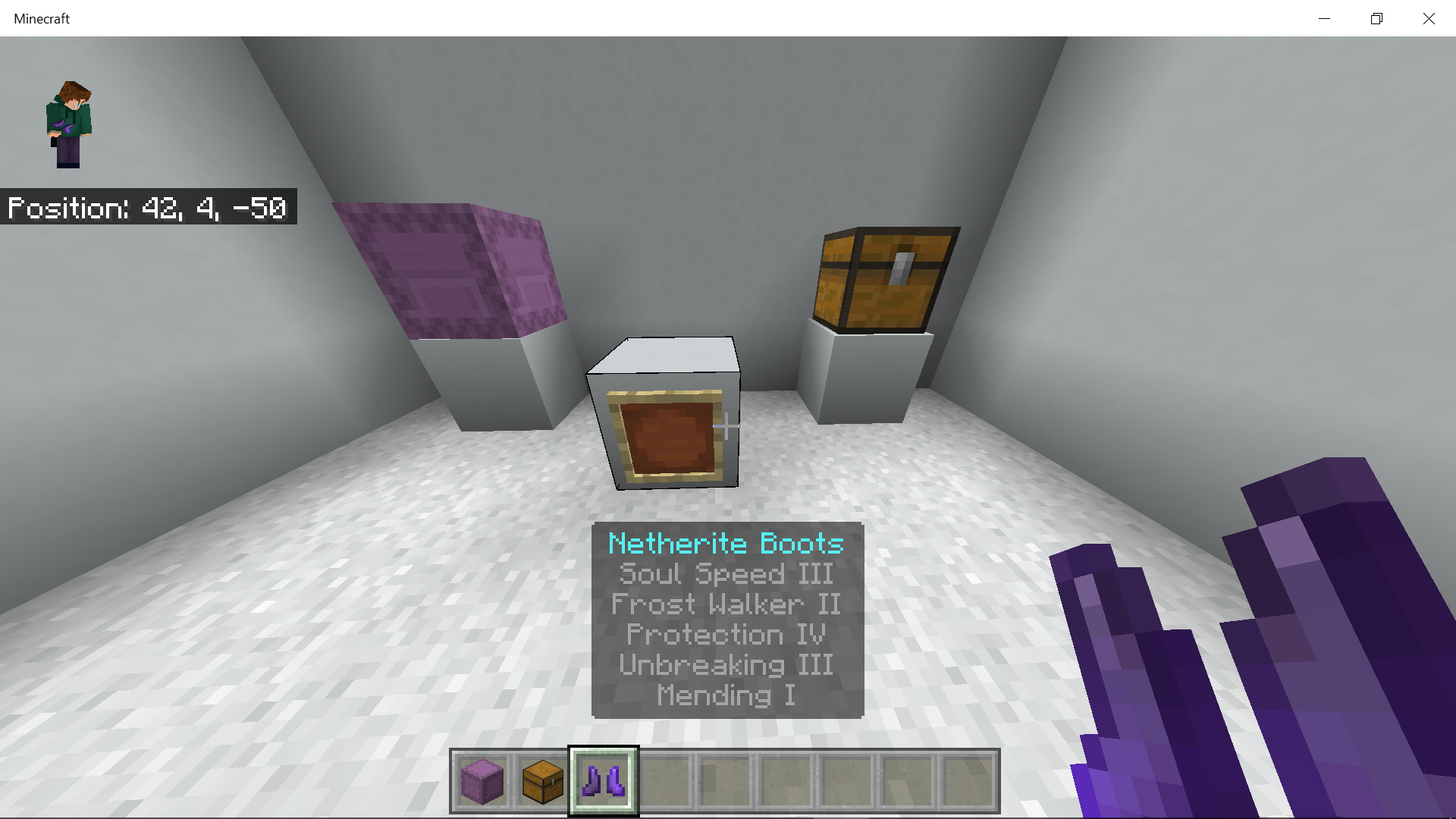 enchant boots (mine were enchanted with : Soul speed 3, frost walker 2, Protection 4, unbreaking 3, mending 1)