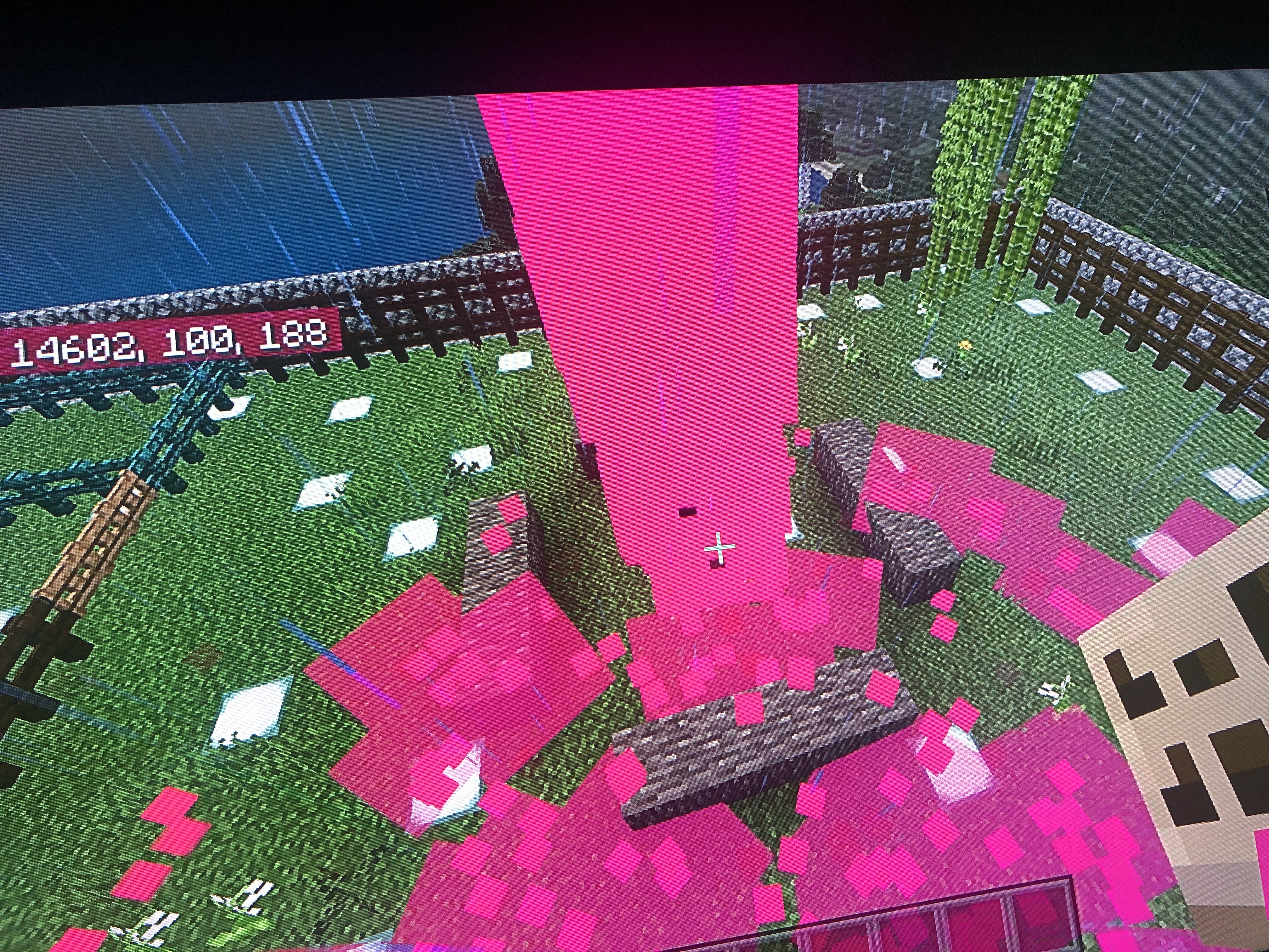 Every mob and some torches turn hot pink and after about 10 mins my Minecraft crashes... I am not the only one experiencing this... I am reporting for me and two of my friends. We all have experienced it twice in the past 3 hours. It is currently 11:16 on Tuesday, June 8th 2021. The first or last picture is a room of beds.