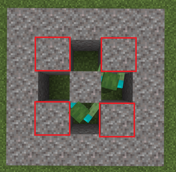 Add 2 blocks (high) to the corners (to keep the mobs from moving).