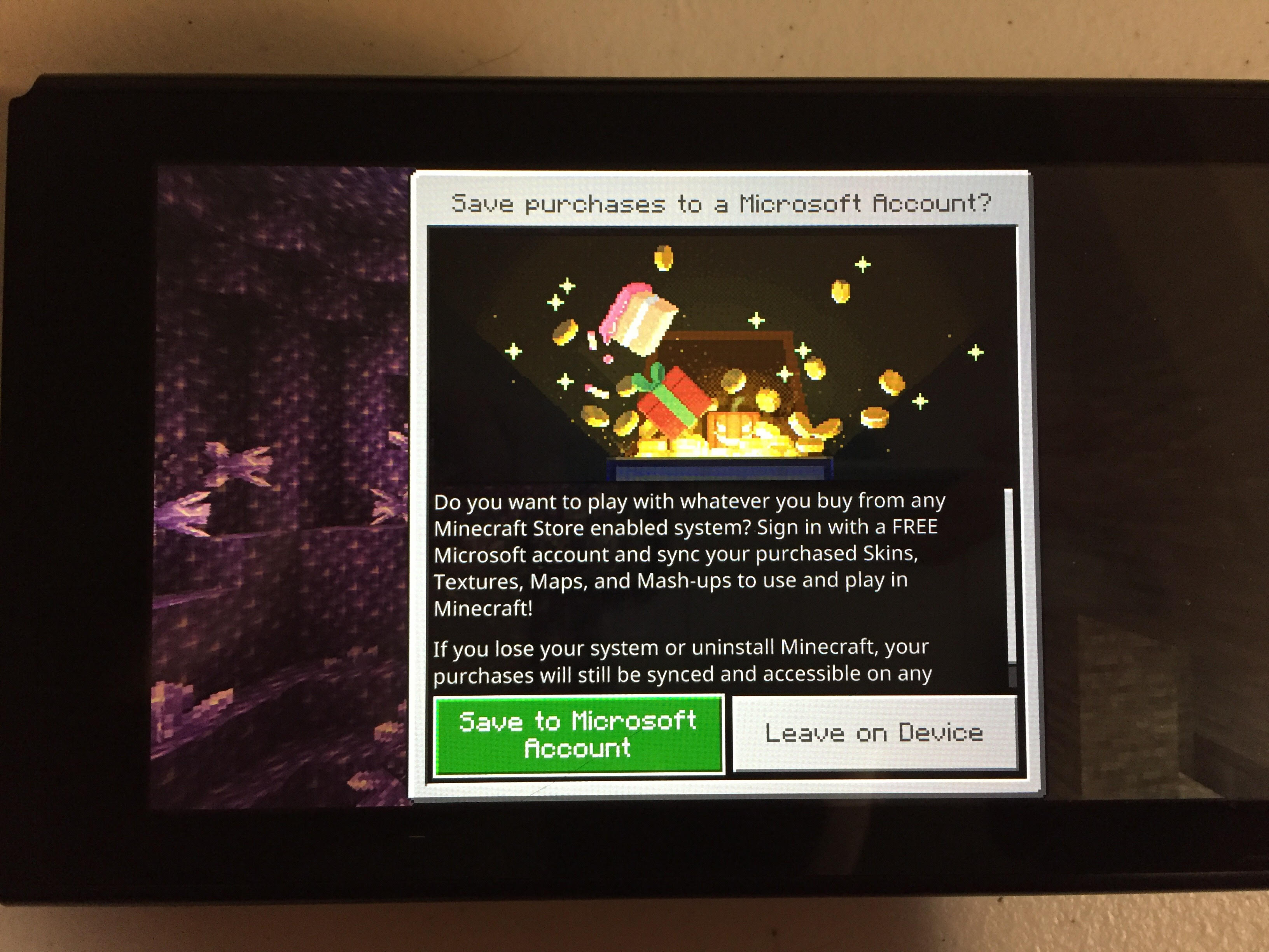 When I load the game, it attempts to sign into the microsoft account. After it fails it makes it impossible to even manually sign in! When I click the sign into account, it takes me to the next screen about purchases. If I click on the "Save to microsoft account", it plays the clicking sound and then nothing happens. If I click the leave on device, it just takes me back to the main screen. It appears that if I stay on the microsoft screen long enough, it does "sign me in" but it still renders the marketplace unavailable, and it still won't connect to realms or servers. Also, most of the time when I close the software, it closes with an error message on the switch saying it closed due to an error. I would attach a video but the file size limit prohibits me from doing that. Sorry if this comes off as a repeat as I really tried looking through the other bugs but there are so many and they all sound a little different or they are on different platforms. Just hope all you guys get it all figured out.Β