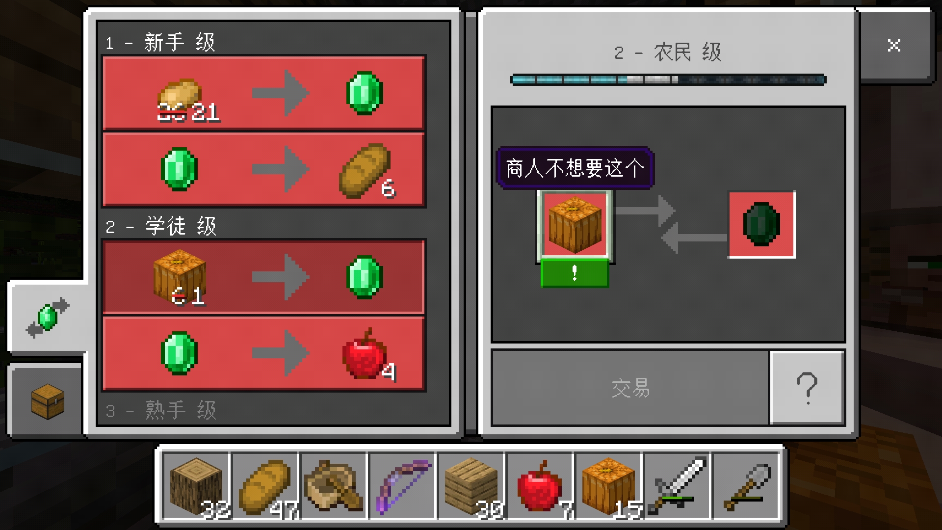 I can't trade with the villager,and I habe enough and correct stuff.I tried to place the pumpkin down and broke it,then I can trade again