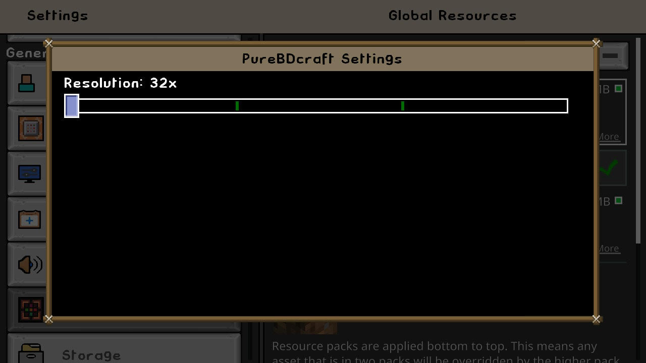 When I apply a resolution change on a resource pack in the global resources settings, the resolution does not change. I don't exactly need to do anything to reproduce it (I don't think), it just doesn't work as intended.