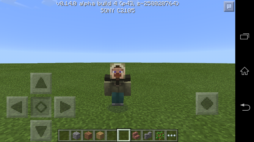 I am Playing on a Sony Xperia L. I'm using the holiday skin pack and the "Parka?" skin when crouching it displays a duplication of the skins back.I am on a newly generated flat world.