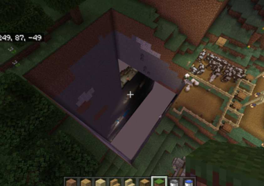 I logged onto my private server to find that half of a house I had been working on the previous night had disappeared, to the left of the house was a rectangular hole which went down past bedrock level. About 60 blocks by 20. I then kept getting notifications that my named animals had fallen out of the world but were not anywhere near the chunk missing.