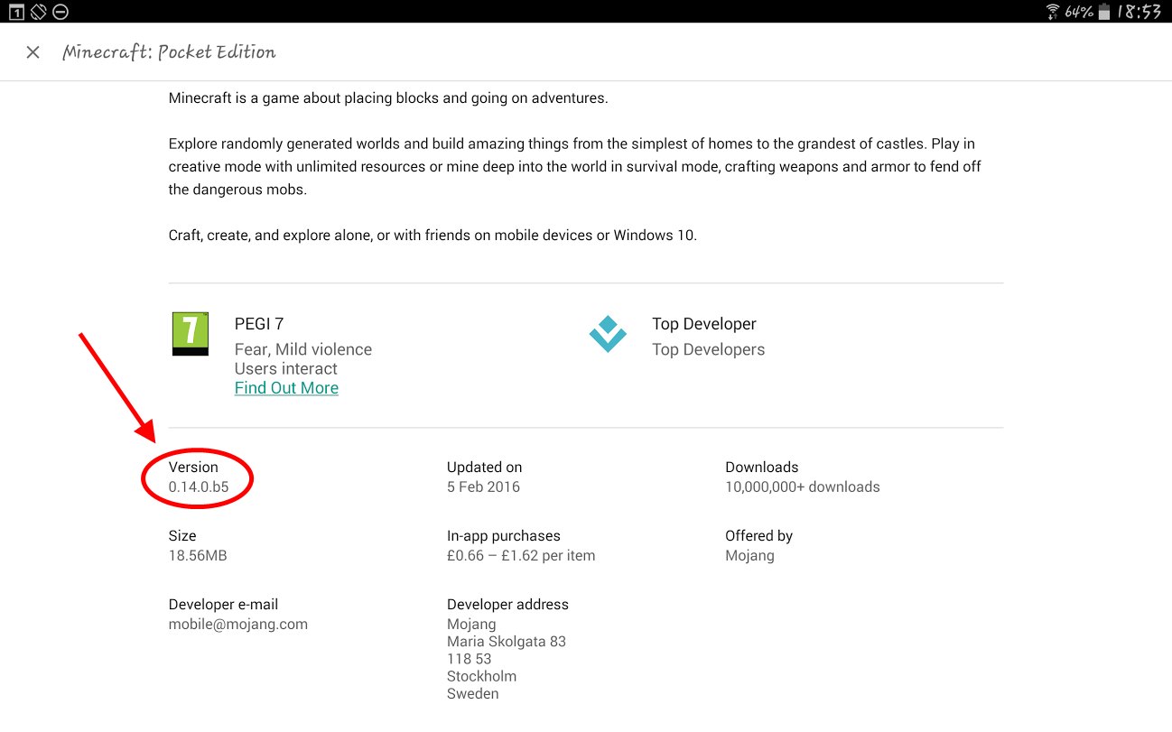 @unknown If you open the Playstore and look at the game details for Minecraft Pocket Edition, you should see the current version that you have there: