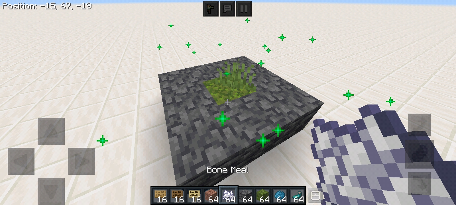 When bonemeal is applied on a moss block, nearby deepslate and tuff do not change to moss blocks. Bonemealing moss only changes natural stones added prior to 1.17, unlike Java Edition.