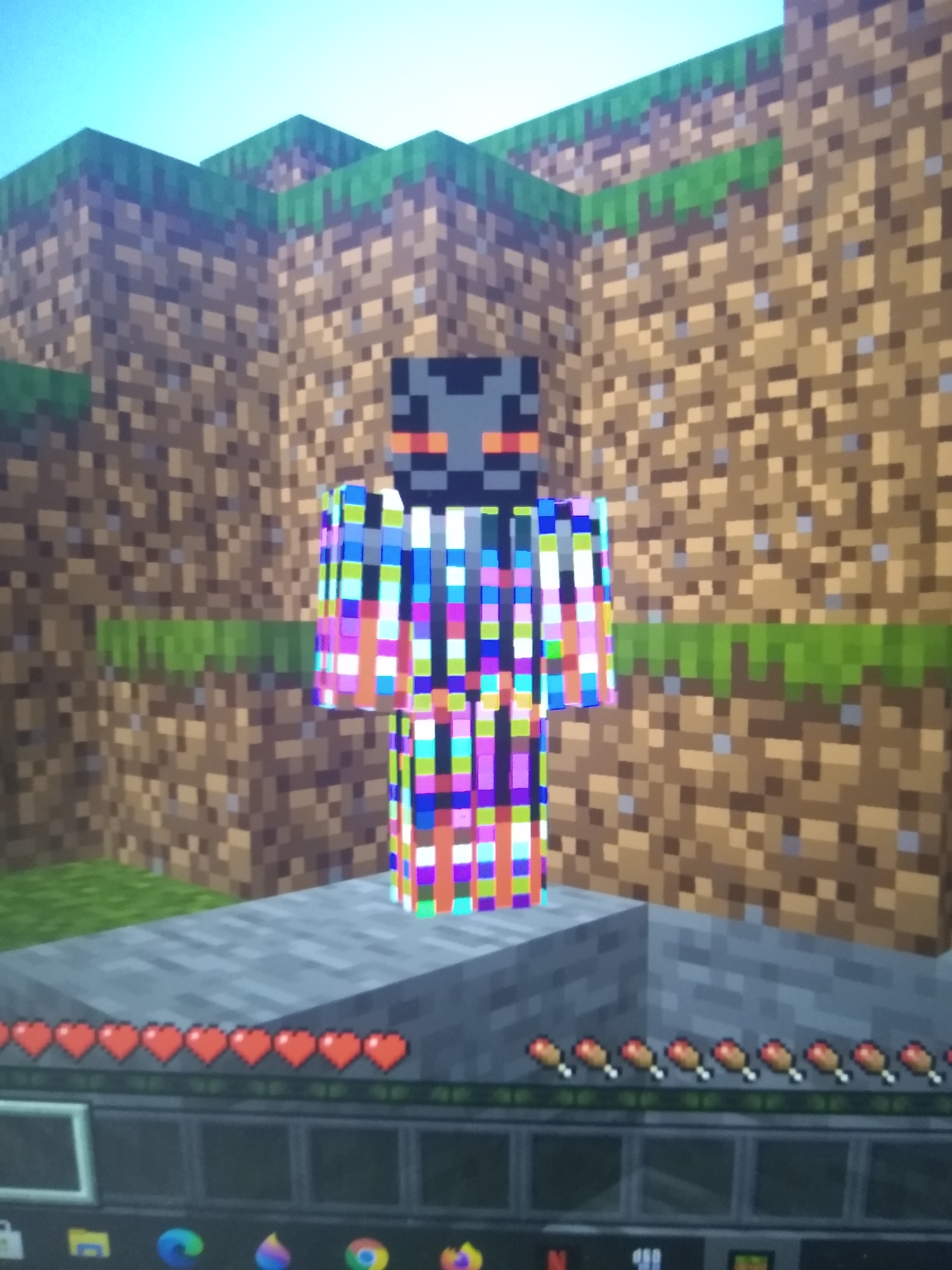Whenever I see my custom skin, it has a random glitched effect to it. It's only effected on the outer layer, since I can see the normal skin underneath it. The effect is never the same. On servers, a friend on Xbox can also see it, but he usually sees a different glitched effect than I do. I've tried editing the skin in drawing programs to make sure there's no stray pixels.