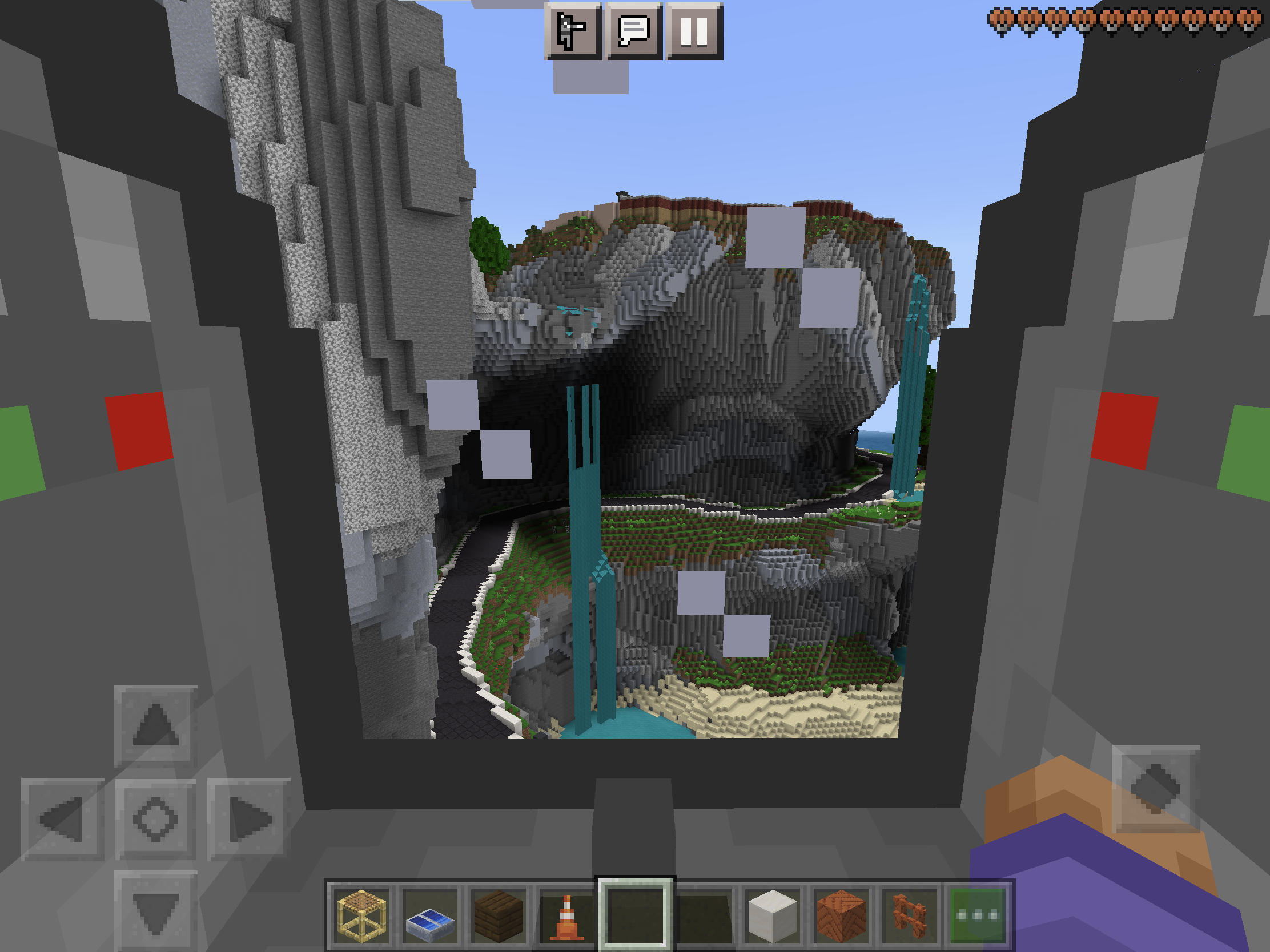 The texture for water sometimes takes a while to load on Realms Plus templates. After up to 15 seconds, the texture finishes loading. This is significantly longer than most textures take to load.