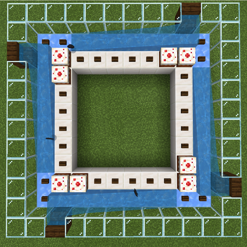 Build 4 water-on-ice streams around the outside of a square of non-ice solid-top blocks, like this: