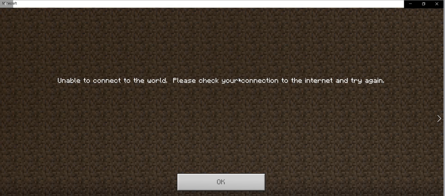3 - After 4 or 5 minutes its says: Unable to connect to the world. Please check your internet