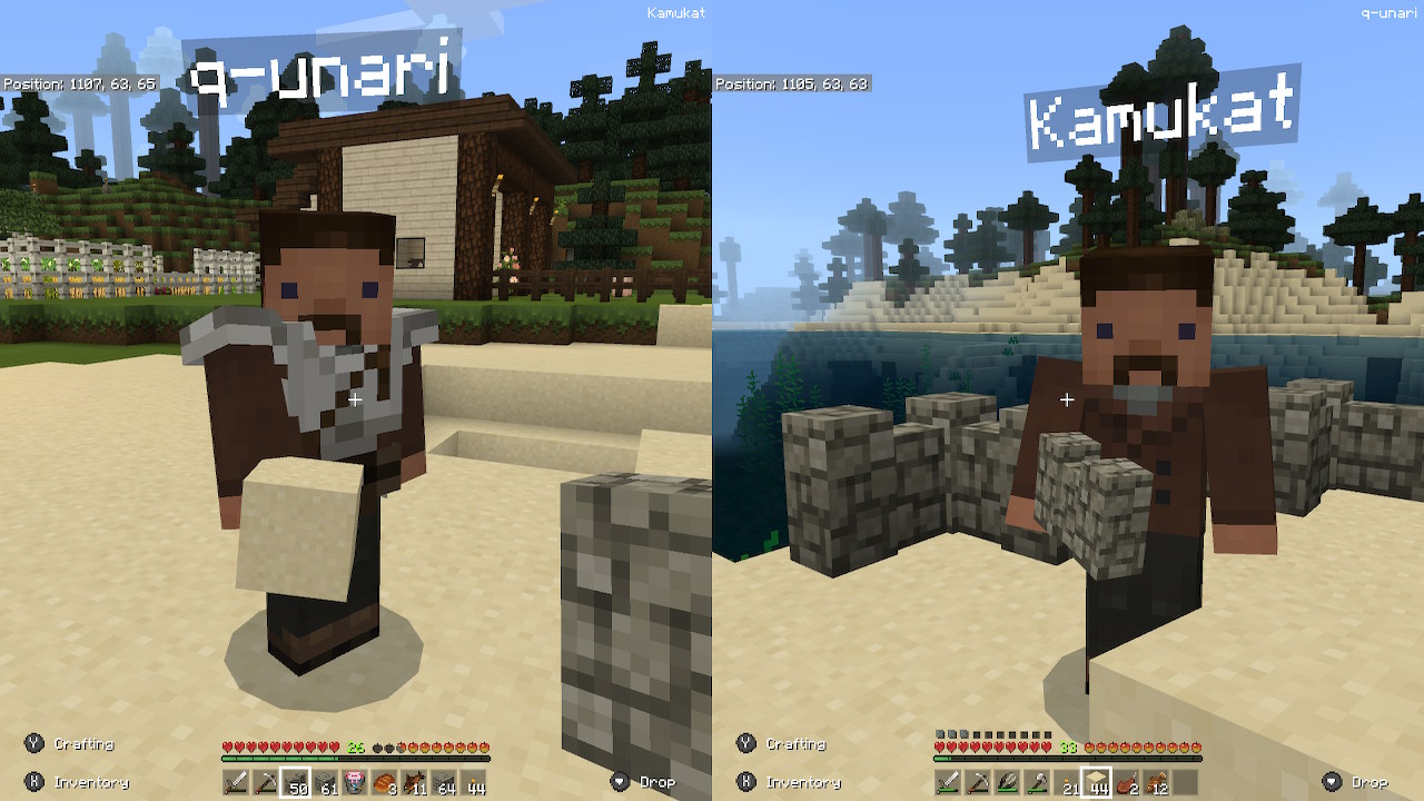 When my husband and I play Minecraft on the Switch, we usually play it split screen on the same system and TV. We've both created custom character skins using the character creator that's built in with Minecraft. Usually when we start up our world to play together we can see each other's skins just fine, but once we play for awhile (sometimes 10 minutes, sometimes more) our skins disappear and turn into this odd skin that isn't Steve or Alex. On our own sides of the TV we can still see our own skins, but he sees my skin as this strange default man on his side of the TV and vice versa. The only way we've been able to make them switch back is by reloading the world, but then it just happens again after awhile of playing.