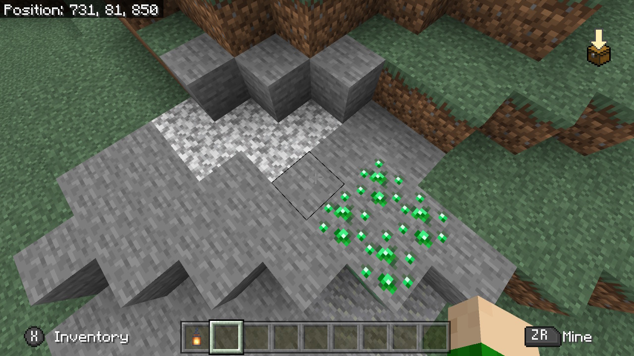 Emeralds spawn in veins rather than a singular ore block like it should be- and they generate at any level rather than just deep in the earth. They still only generate in mountains however.