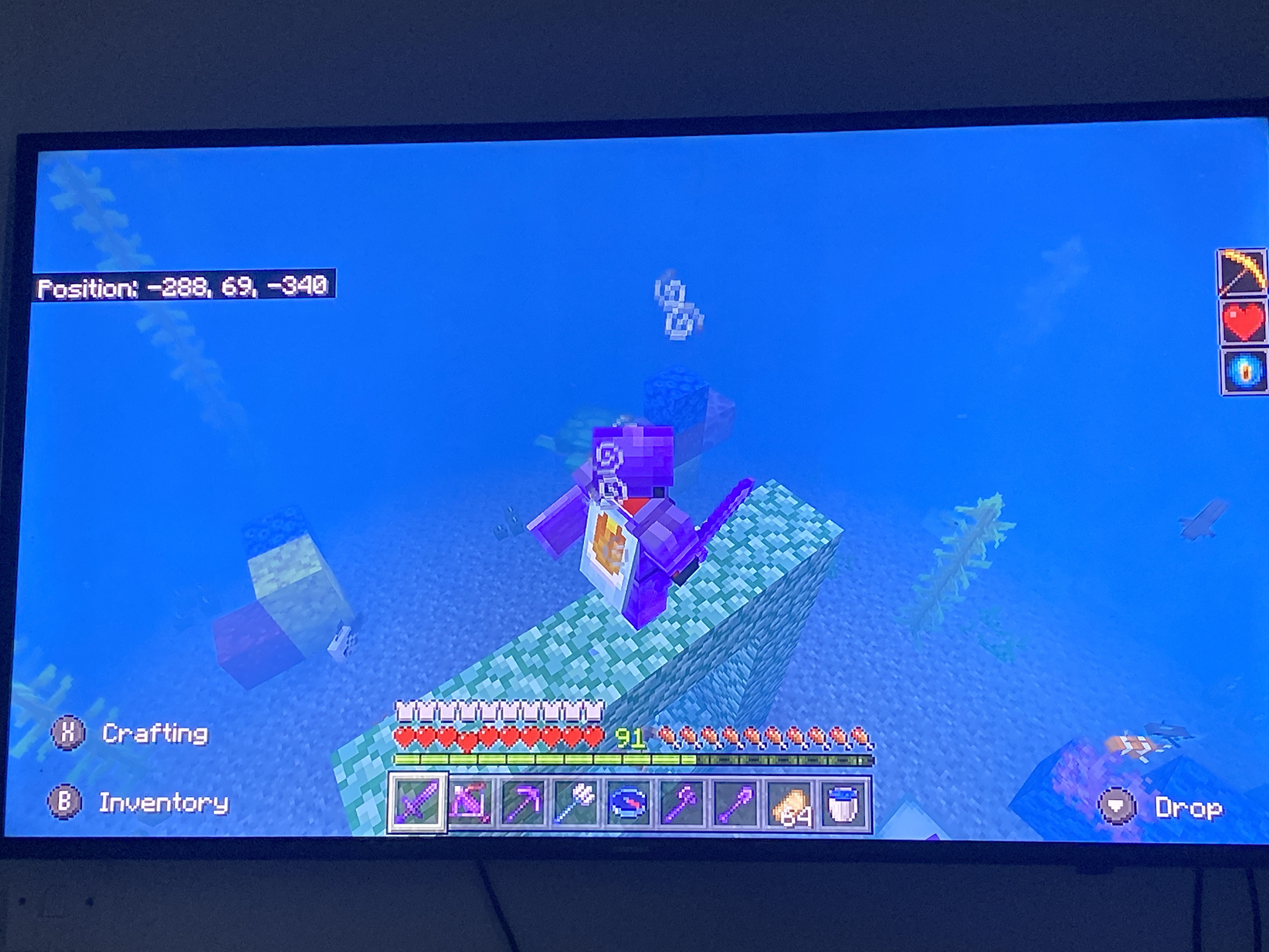 1.17.10 changed the way players can see in the water to limited visibility like it used to be, however when using a Potion of Night Vision or most importantly, when in water with the a heart of the Sea effect active, the murky/cloud effect remains in full effect and you are unable to see or enjoy the aquatic scenery, wether it's natural or aquarium made. The screen lights but nothing is actually visible at all. Please fix this. Thank you.
