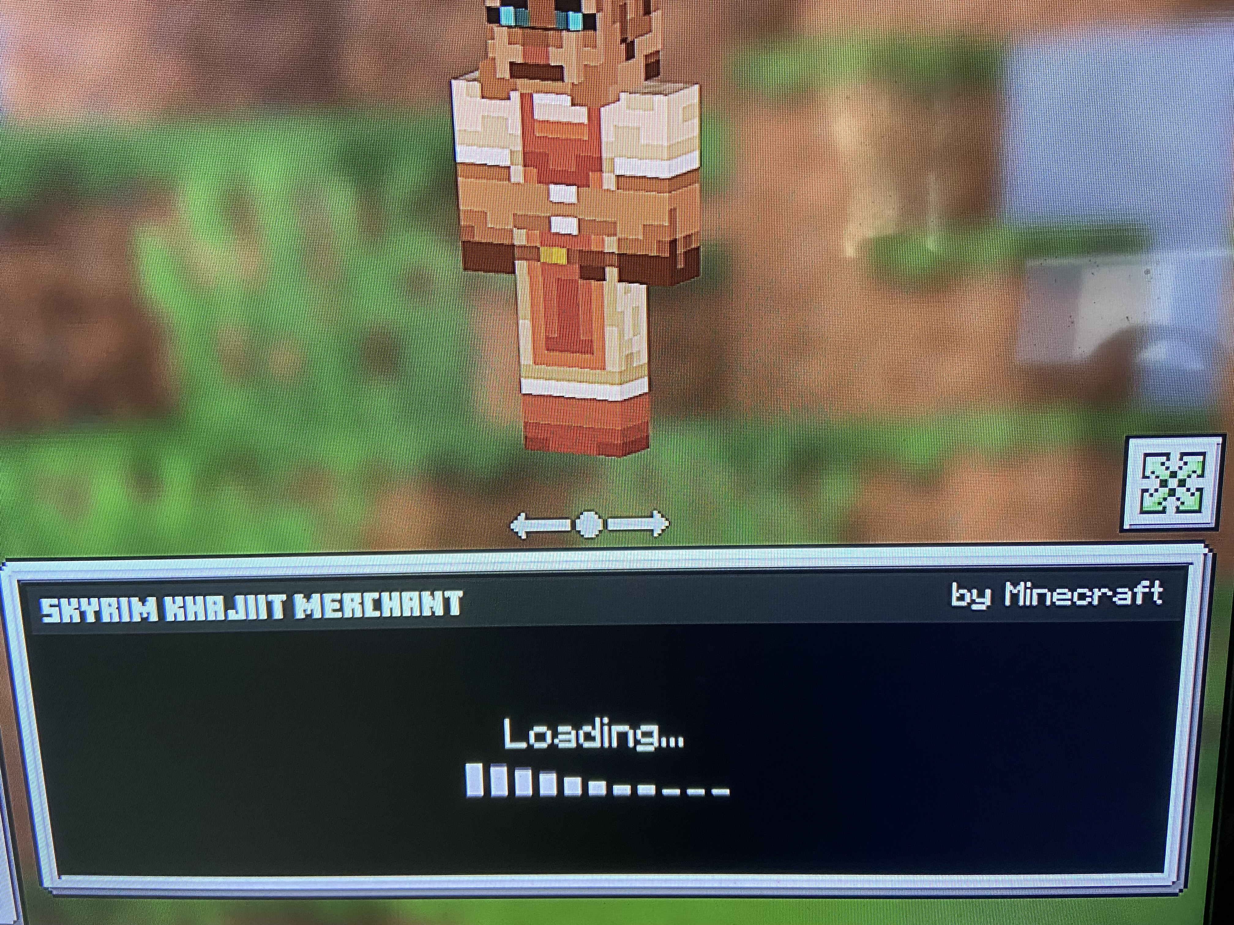 For Minecraft Bedrock on the Nintendo Switch, I am unable to change my skin, the small little box (as seen in the photo) remains "Loading" regardless if I am online or offline, what is causing this? (It cannot be my internet as everything else works well online.) I must also note that this problem does not occur with the Mario Themed Skins. (and Yes I own the skin pack shown in the photograph.)