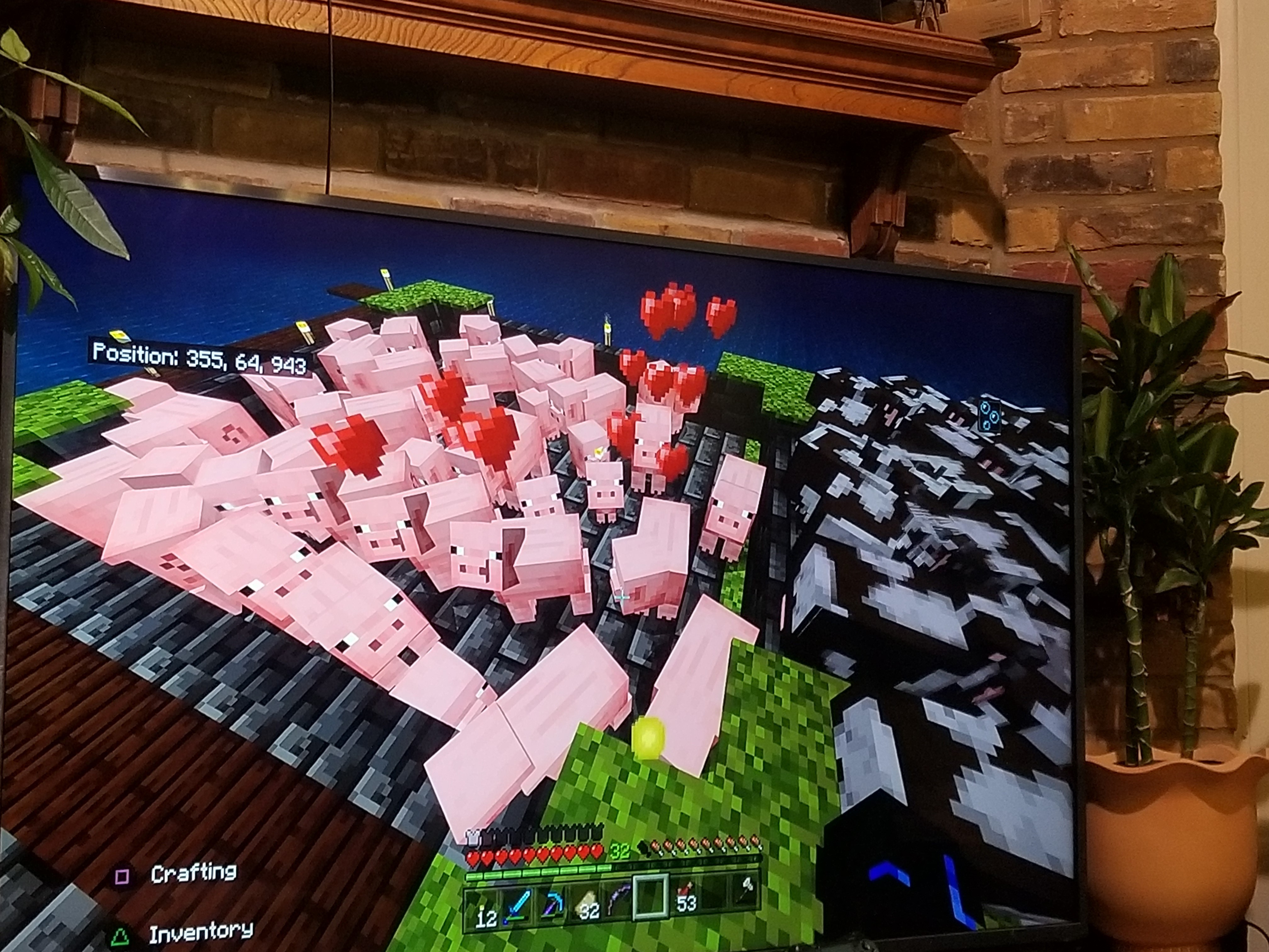 When I give pigs carrots, about a third of the pigs will not pathfind to breed, or breed at all, even if another pig with the heart effect is right next to it. They just stand there with the heart effect until it wears off. It is inconsistent and I have not figured out what causes it. I have restarted my ps4 multiple times and even had an update since I found this bug a couple of weeks ago. In the attached images I fed the pigs 6 carrots and two of them are still standing there, not moving in the time between the two images.
