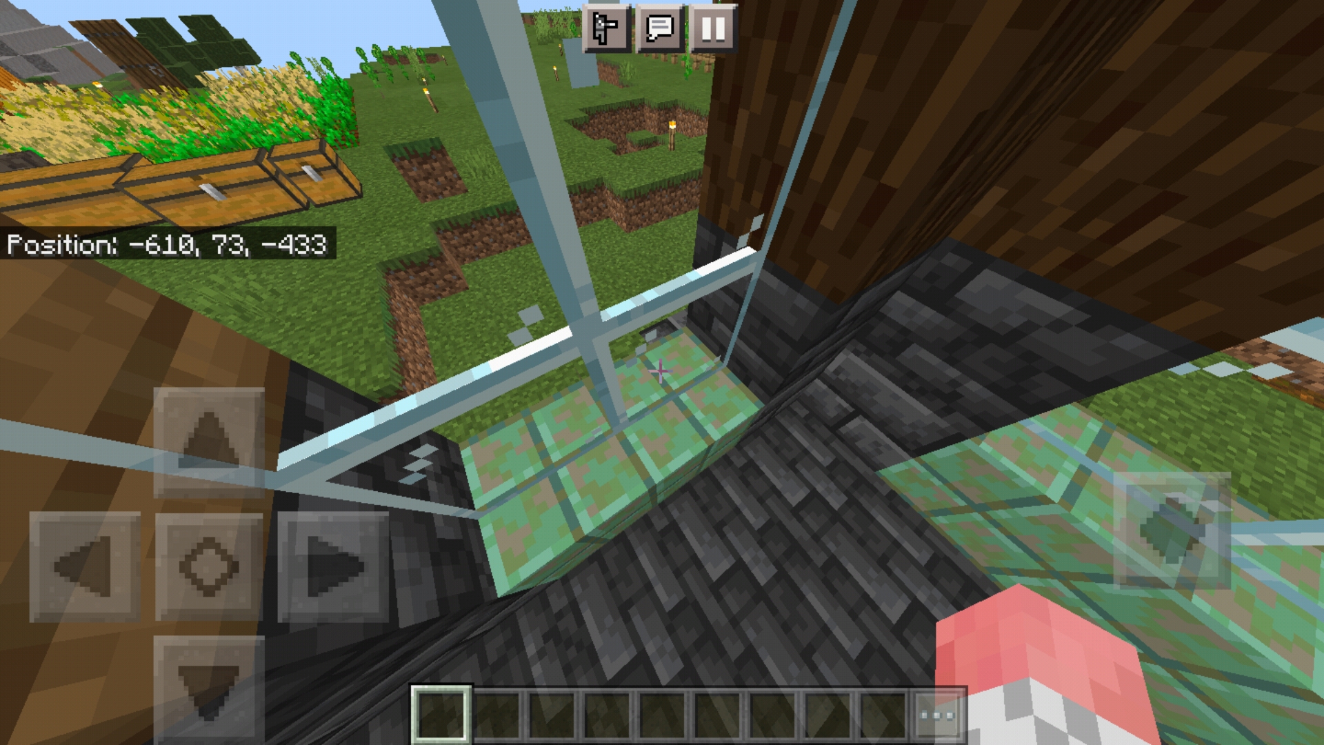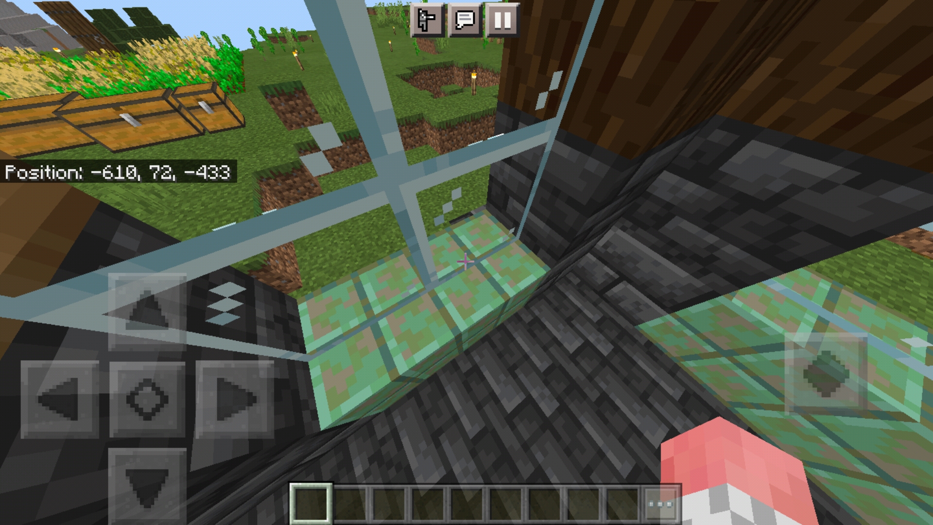 Glass panes' upper textures have a chance to not render correctly when you jump/ jump+ go forward a little bit.